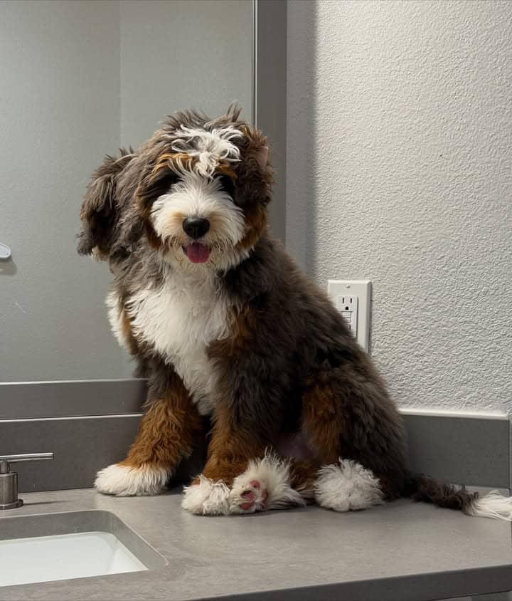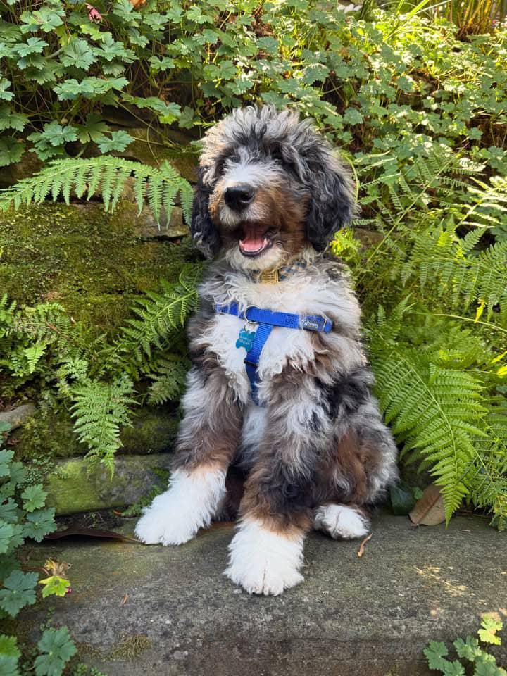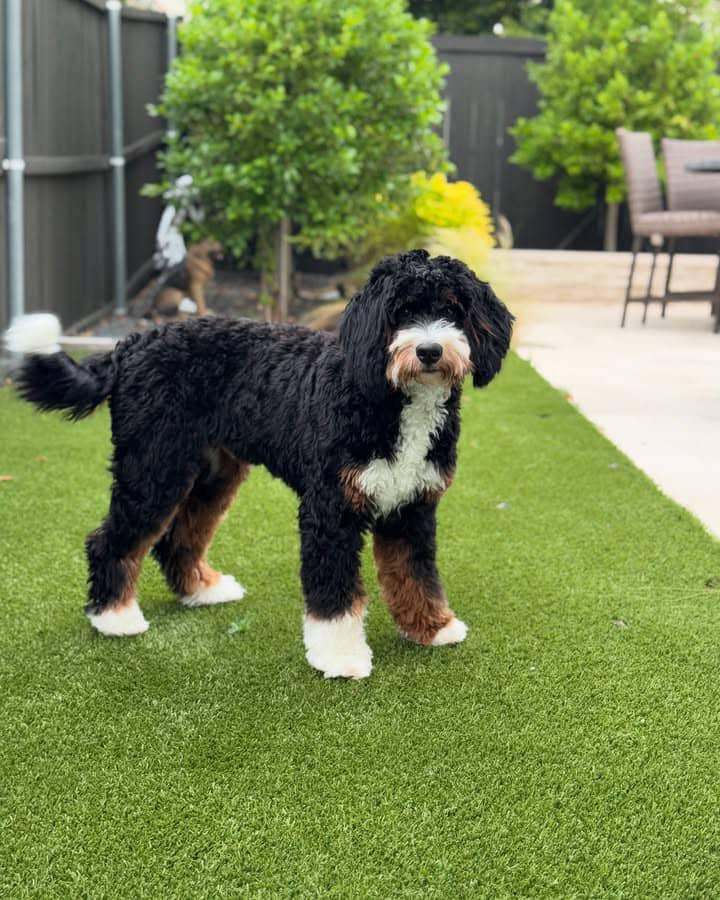 - Breed: Bernedoodle (Bernese Mountain Dog × Poodle)